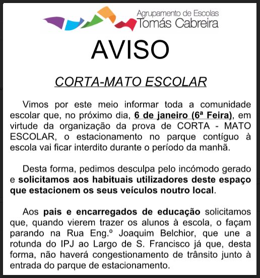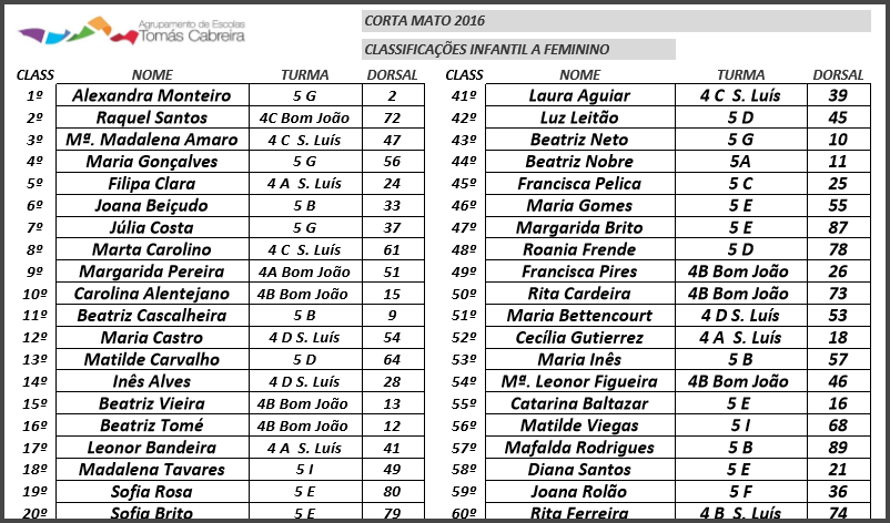 Divulgamos, aqui, as classificações do nosso Corta-Mato escolar realizado no dia 6 de janeiro de 2017. Parabéns a todos os participantes!