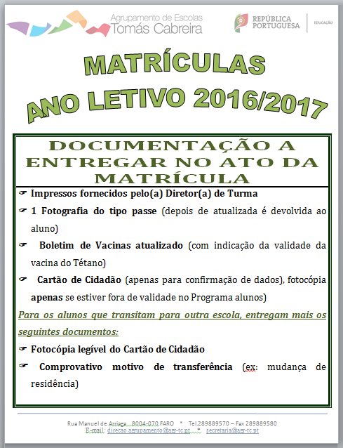 Clique, numa das imagens abaixo, para ver, respetivamente, os avisos -de renovação de matrícula- para os 5º e 6º anos (escolas JM e Culatra) e para os 7º e 8º anos (escola JM).