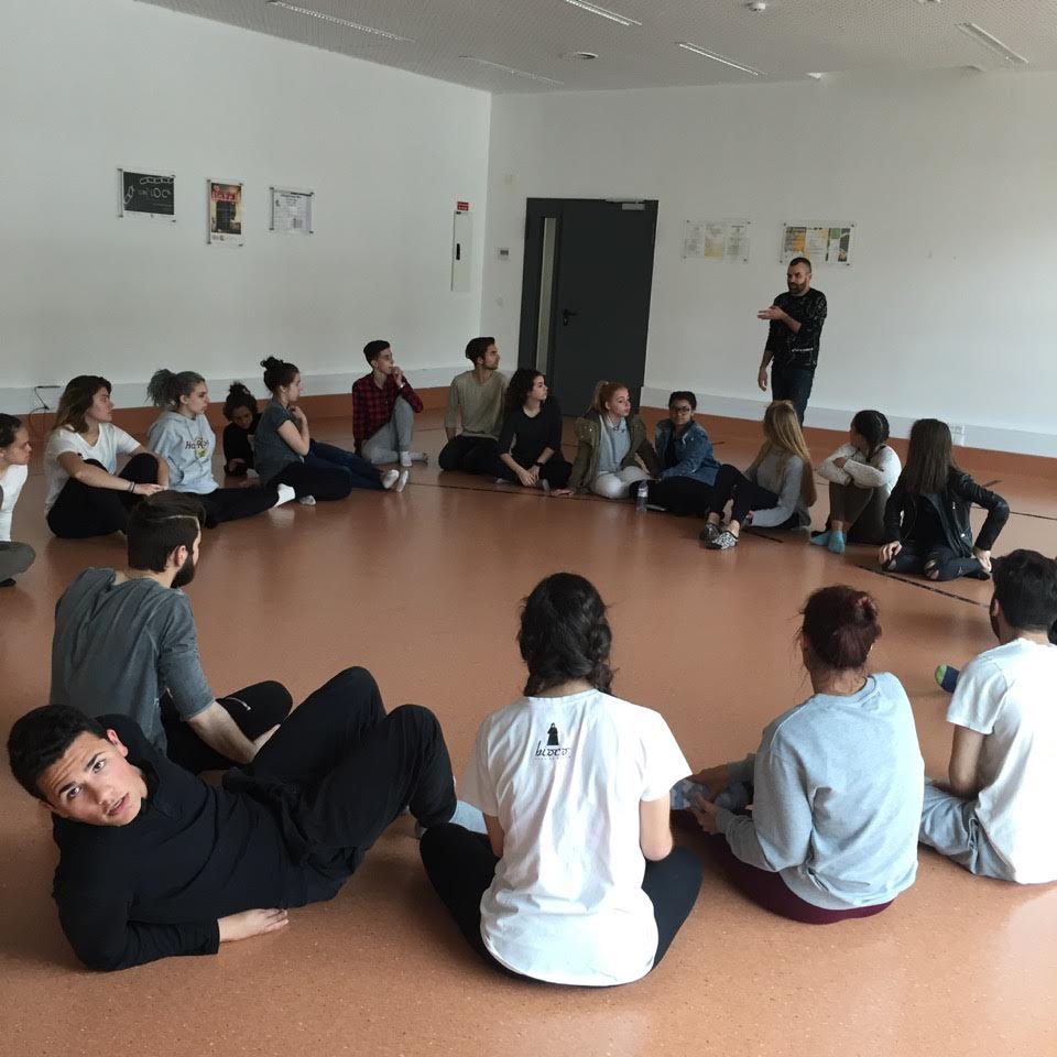 Decorreu na passada sexta feira, dia 15 de abril, uma conversa seguida de um workshop com o ator/encenador/coreógrafo Tiago Cadete.  A sessão iniciou-se com uma conversa acerca do percurso artístico do artista, tanto nacional como internacional, de modo a dar uma perspetiva profissional  e abrangente a quem queira seguir uma carreira dentro das artes. Participaram alunas e alunos dos três anos do Curso Profissional de Artes do Espetáculo - Interpretação, bem como o Grupo de Teatro Improviso. PAE - Tiago Cadete no AETC